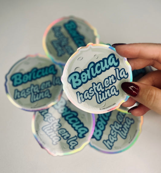 Boricua En La Luna Holographic Sticker